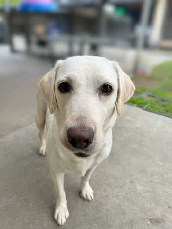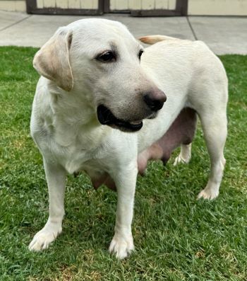 Crissy is a stunning near-white mother with a playful, easygoing personality that makes her a joy to be around. She loves to retrieve and enjoys active play, but her favorite moments are relaxing and spending quality time with her humans.