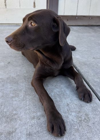 Reese is not a very tall girl but her physical characteristics definately take after the American Field Lab style look for sure. She has just the right amount of energy to get through any activity but is calm enough to sit and relax next to companions when its quiet or on down time.