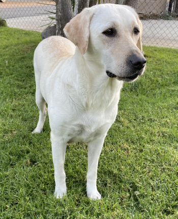 She is very calm and friendly with people and other dogs. She comes from a show and hunting background. Her looks are an even combination of both the English and Ameircan hunting lab style.